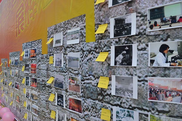 活动现场,巨大的照片墙上张贴了35组共70张新老照片,珍贵的老照片诉说着建校时的不易,靓丽的新照片展现出发展后的辉煌,通过旧貌新颜的对比让全体师生回顾了学校发展的风雨路程,鲜明的视觉反差格外渲染邮子之情,引来众多师生纷纷驻足观看,并在献礼校庆的横幅上留下了自己对母校70华诞的深深祝福。其中评选自己最喜爱的新老照片环节更是得到了大家的热情参与,同学们通过为选中的每组照片配文字的方式表达了自己对母校发展历程的理解。