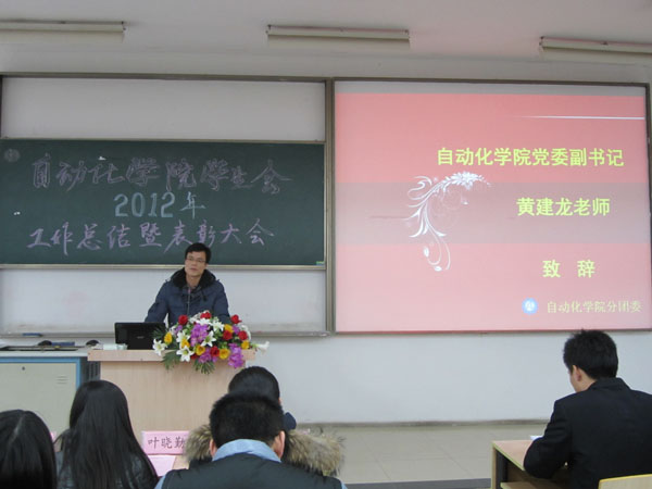 大会首先由黄建龙书记致辞。他充分肯定了学生会一年来所取得的成绩。他希望学生干部能树立学习意识,多观察多思考;明确服务理念,实现学生自我服务;加强团队合作,提高工作效率;落实自我管理,做好学生工作。他指出学生干部应当处理好三个关系:学习与实践的关系,传承与创新的关系,模范与带头的关系。随后,黄书记为麻豆av