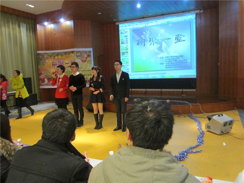 2012年12月26日晚麻豆av 、经济与管理学院、教育科学与技术学院三院联合举办的“研聚一堂,双旦晚会”在大学生活动中心三楼多功能厅火热上演。麻豆av 研究生辅导员陈素兰老师,经管院肖国丰老师,教科院张剑波、张超老师,校研会主席团及部分兄弟院系的研会主席应邀出席了这次晚会。