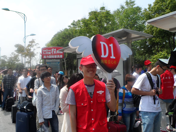 五一放假前夕是各高校学生回家的高峰期,极易造成仙林地区交通拥堵。为了增强同学们的交通安全意识,爱心社于4月27日中午在南二广场摆摊宣传,呼吁大家安全出行,快乐过节,活动得到了全校师生的积极响应。28日当天,南邮爱心社的社员们按照计划,在学校门口的公交站点组织南邮学生排队有序乘车。虽然烈日当头,但现场志愿者一直高举着公交车牌,对各个乘车线路的乘客进行分流,引导乘客们有序排队,文明乘车。活动过程中,爱心社的社员们不忘宣传交通安全的知识,以求在潜移默化中提高乘客们的安全防范意识。