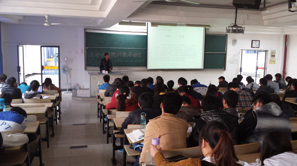 贾昊鑫老师上台致辞拉开了此次科技创新经验交流会的序幕。贾昊鑫老师表示科技竞赛能让同学们完善所学到的知识体系,提高同学们的实践能力和就业的竞争力,鼓励同学们积极主动地参加科技创新活动。随后,五名优秀学生代表:ACM协会副主席高飞、阿波罗机器人俱乐部主席赵赫成、数模协会前会长唐海涛、全国电子设计大赛一等奖得主林光远及飞思卡尔二等奖得主顾佳俊上台分别就自己主攻的领域做了精彩的经验分享,强调了“科研贵在坚持,实践贵在兴趣”这一重要理念,希望大二的同学们能够找准目标,不怕困难,一步一个脚印地朝着自己的梦想前进。期间,台下同学们的反响也十分强烈,踊跃地举手发言,与学长学姐们进行了积极的互动,将此次大会推向高潮。