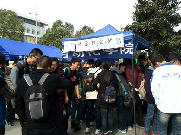 此次活动采用团队制,整个参赛人员分为十个组,每组五个队,每队两到三人不等。随着比赛开始的口令响起,队员们冲出出发室,寻找我们在校园不同角落藏好的信号源。比赛如火如荼地进行,校园里都是一个个寻宝人的身影。下午第二场第二组“快乐寻宝”组于十七分钟完成了任务,勇夺无线寻宝桂冠,紧随其下的是“大主席团”组和“机智”组,分获二三名。