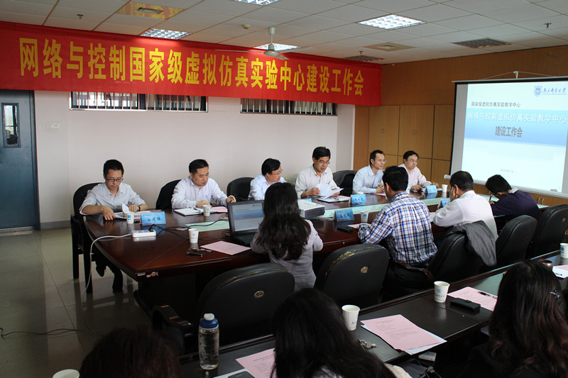 2014年我校“网络与控制虚拟仿真实验教学中心”被教育部批准为全国首批100个国家级虚拟仿真实验教学中心。近日,我校在仙林校区召开了网络与控制国家级虚拟仿真教学实验中心项目建设与推进会,校党委书记刘陈教授、副校长王承宽研究员,副校长兼中心主任蒋国平教授,实验中心建设单位麻豆av 、实验室建设与设备管理处负责人以及麻豆av 和通信与信息工程学院的相关老师参加了会议。会议由王承宽副校长主持。