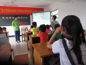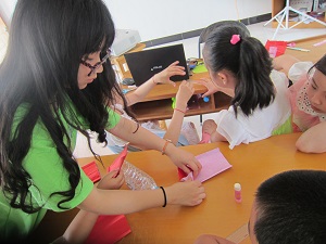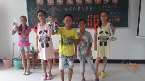在这九天时间里,我们的志愿者与湖山社区的孩子们一起度过了难忘的时光。可爱的营员们一起在手工课中学会了怎样画一双有创意的手、怎样折纸袋和枫叶,并且用自己的双手自制了信封和感恩贺卡送给爸爸妈妈。从中,可爱的营员们收获了“自己动手做”即DIY的乐趣,发挥了丰富的创造力和想象力。课堂中充满了欢声笑语;一起聆听了安全教育讲座、学习了青奥会和世界杯的相关知识。利用课间时间,志愿者们组织开展了多次踢球比赛,所有的小营员们都在趣味的运动中绽开了笑颜;一起在趣味英语游戏中,锻炼并学习了英语口语,大孩子们充分调用平日里所学的知识,展现了杰出的学习水平。小孩子们也跟着大声朗读单词和句子,眼神里充满了对知识的渴望;一起跟着我们的志愿者领悟了环境保护的重要性,并学习到了许多生物地理知识,涉及方方面面,开拓了视野,也让这些祖国未来的花朵感受到身上所肩负的守护我们赖以生存的星球的责任;一起学会了感恩、聆听了励志故事。在这段日子里,志愿者们不仅教授小营员们科学知识,并且教导他们怎样做人。小营员们在写给父母的感恩信中无不透露出对辛苦工作的爸爸妈妈的感激,每个人都情深意切,令人动容。期间,我们的志愿者们组织开展了读书会和朗诵比赛,每一个孩子都十分认真积极地准备和参赛。志愿者和小营员们一起做了游戏、一起观看了许多优秀的相关主题动画电影。在九天的时间里,快乐和充实是占主导的。