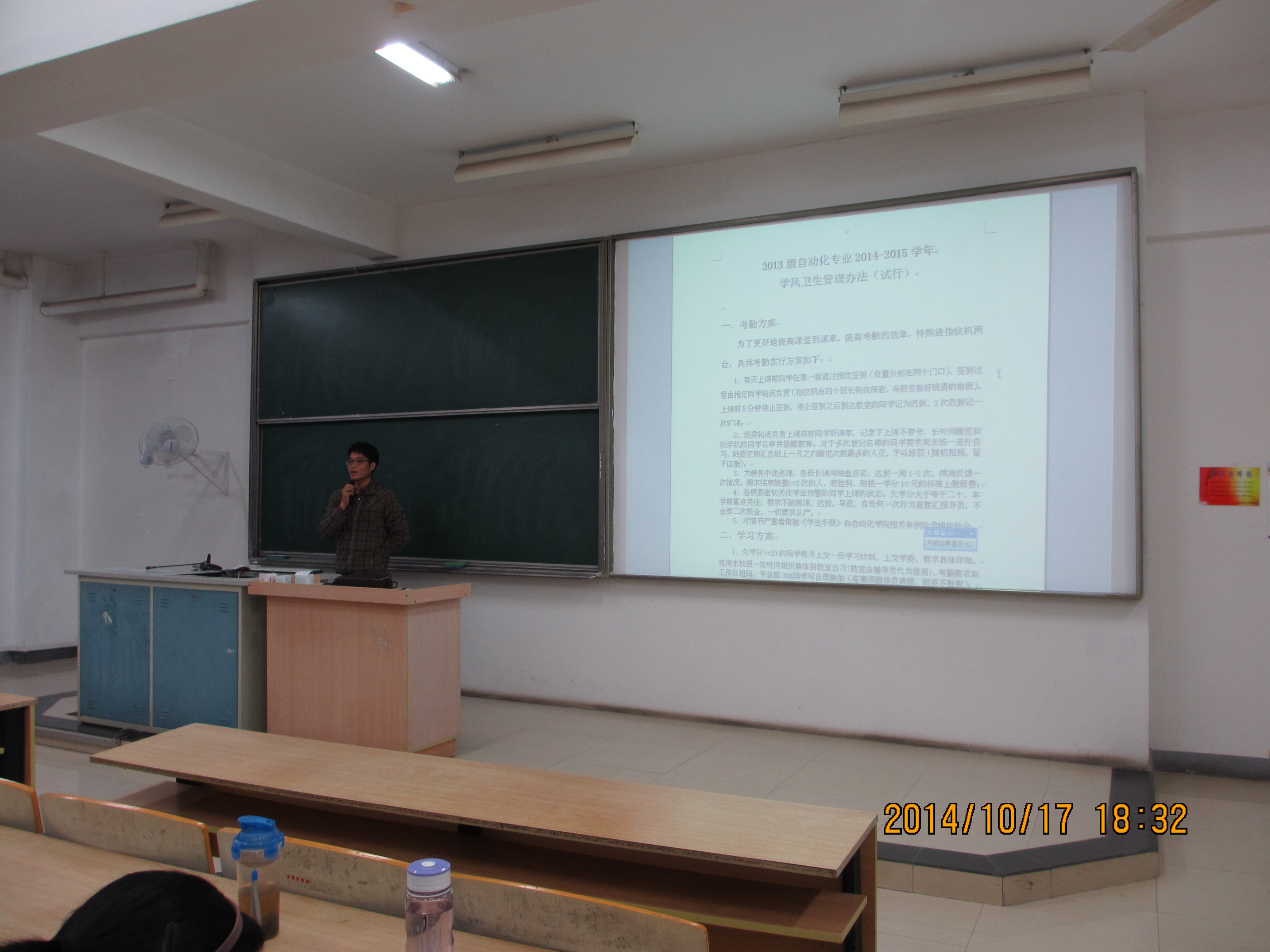 10月17日下午18时,麻豆av 自动化专业2013级自动化专业在教三520举行年级大会。自动化专业13级全体同学参加了本次大会。本次大会由辅导员秦昌建老师主持。会议的主题围绕着“整风”进行。