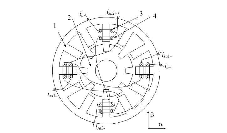 无轴承开关磁阻电机转矩和悬浮力间存在复杂耦合关系,且很难在控制策略和数学模型中实现二者的完全解耦,是制约无轴承开关磁阻电机悬浮和运行性能难以提高的重要因素。针对上述技术问题,提出了一种无轴承开关磁阻电机及其控制方法。在优化设计12/8极双绕组无轴承开关磁阻电机定子、转子间极弧关系的基础上,提出了该电机的一种控制方法。该控制方法解决了悬浮力和转矩的解耦问题,简单有效,并且使绕组的铜耗最小。