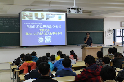 2014年116日下午,2013级自动化专业在教3-201举办优秀学生表彰大会暨2013大学生年度人物事迹学习大会,以表彰在大一学年中学习和工作方面有突出表现的同学。辅导员秦昌建出席并主持了表彰大会。