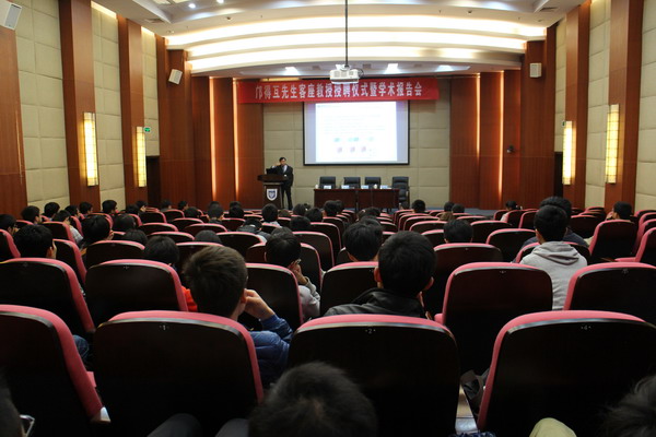 客座教授仪式暨学术报告会在仙林校区行政北楼学术报告厅举行,人事处处长周健主持授聘仪式。副校长蒋国平教授出席授聘仪式并向邝得互教授颁发聘书和校徽。