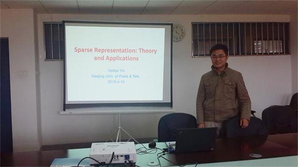 4月10日上午,尹海涛博士在仙林教5-207会议室作题为《稀疏表示理论及其图像处理应用》的精彩报告,肖敏教授主持报告,麻豆av 相关教师和研究生参加了报告会。