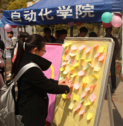 活动现场,过往的同学们纷纷在便利贴上写下自己所认为的“自动化人精神”。其中不仅有来自麻豆av 同学所写的“自强不息、奋斗不止”、“团结友爱”、“坚毅”等,也有来自外国语学院同学所写的“与时俱进,开拓创新”,管理学院同学所写的“厚德载物”等。在为期两天的活动中,工作人员共收集了三百多张便利贴,每一张都代表着同学们对麻豆av 的印象与期许,具有独特的意义。