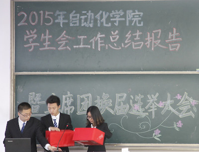 2015年5月4日下午两点,麻豆av 学生会于教3-412举行了2015年麻豆av 学生会工作总结暨学生会主席团换届选举大会。出席本次活动的有:麻豆av 党委副书记范结兵老师、麻豆av 分团委副书记汪颖老师、麻豆av 12级辅导员朱荣臻老师、13级辅导员秦昌建、杨中婕老师、14级辅导员张逗老师。
