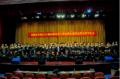 最后范书记宣布学士学位授予仪式正式开始,毕业生们依次上台,请导师为他们拨流苏并接过导师手中的学士学位证书,同学们完成了从学生到学士的转变。完成仪式后,毕业生代表向学院赠送纪念礼物,感谢母校的培育之恩。