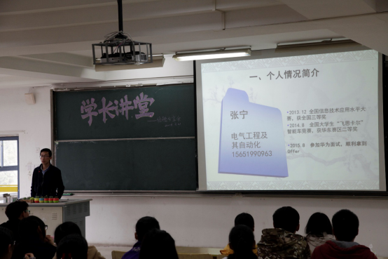 首先由吴昌建学长上台发言,他在今年的考研中成功考上了上海交通大学。吴昌建学长就“我的大学”、“为什么考研”及“如何选择目标院校”进行了简单发言。接着他深入讲述了自己考研的学习方法与时间安排,给想要考研的同学提供了宝贵的建议。紧接着是孙宇学长,他向我们介绍了他成功保研南京大学的经历,他指出保研必须具有两大硬实力:成绩与科研。这就告诉我们平时要努力学习,但在学习之余也要多多进行一些科技活动,以增强自己的硬实力。第三位是张宁学长,他与前两位学长不同,他是科技狂人,得过许多科研奖项,最终放弃考研,选择了就业这条路,并成功拿到华为offer。他向我们说明了就业的相关准备以及应该明确的方向。以华为为例说明了就业的本科最低要求。最后一位上台的沈亿超学长是一为创业达人,他曾是我校创业协会的会长,同是临近毕业,他没有选择考研和就业,而是选择了创业这条路,目前社会正缺少这样的人才,他的演说也让台下的学弟学妹们对创业有了一定了解和兴趣。但是就像学长说的那样,创业很艰难,要有心理准备,要有一些别人想不到的想法和创造力才能从这个人才济济的社会中脱颖而出。