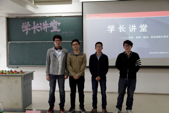 本次经验交流会邀请了吴昌建、孙宇、张宁和沈亿超四位学长与同学们分享他们在考研、保研、就业、创业方面的成功经验。