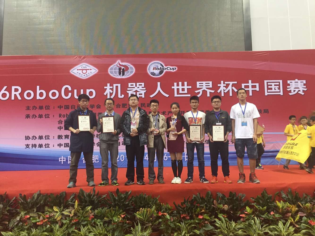 2016中国机器人大赛暨RoboCup公开赛在合肥(4月26日-28日)举办。经过三天的紧张角逐,我校Apollo队共获得一等奖4项(其中冠军2项、亚军1项、季军1项)。其中,Apollo3D队获得了3D仿真机器人足球赛冠军、Apollo救援仿真队获得城市多智能体救援仿真项目冠军。