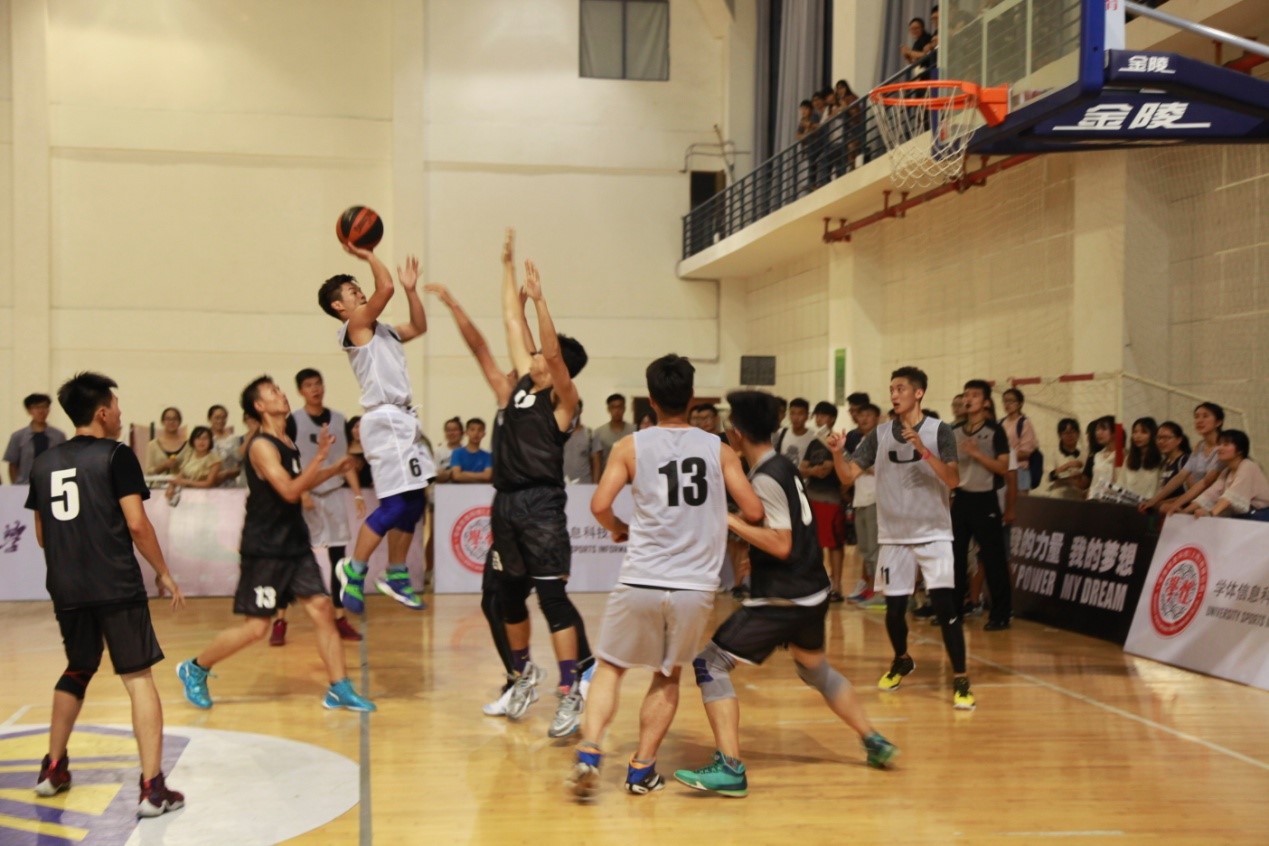 2016年6月15日下午18:30,麻豆av 和通信与信息工程学院之间的“院系杯”冠军争夺战在体育馆正式打响。此前,麻豆av 篮球队一路过关斩将,进入决赛,去年同样是由两个学院进行冠军的争夺,时隔一年,再次较量,彼此碰撞出了更加激烈的火花。