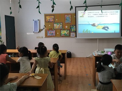 上午课程开始后,“老师”们简要介绍了关于安全教育方面的知识,然后通过视频向小朋友们讲述了校园周边存在的一些安全隐患和校园安全常识。通过有趣却又不乏社会意义的微电影和动画短片,孩子们开始学会自我思考、自我防范,提高了孩子们的安全防范能力。下午为了做到劳逸结合,实践团队员们带领孩子们去到户外开展活动,安排他们进行游戏,实践团队员和孩子们变得更加亲近、熟悉,大家都乐在其中。