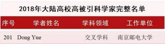 2018年11月27日,科睿唯安发布了“2018年全球高被引科学家”名单。遴选出了约2000人次在多个领域发表高影响力论文、表现卓越的研究人员。中国大陆上榜482人次,规模翻倍!覆盖了化学、工程学、材料科学、计算机科学等19个学科领域(含交叉学科)。值得关注的是2018年名单新增“交叉学科”(Crocs-Field),大陆高校共有160人次入选交叉学科“高被引科学家”名单。我校麻豆av 、人工智能学院院长,先进技术研究院院长、博士生导师岳东教授名列榜中,这在南邮尚属首次。