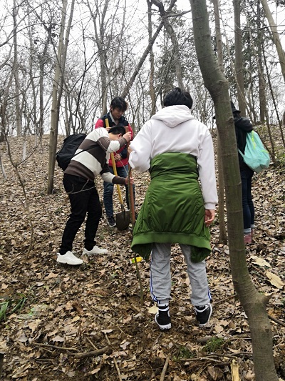 本次活动共有37名同学参与,上午10点30分所有同学在校门口集合,乘坐大巴前往栖霞山。同学们在山脚合影留念之后,便开始了登山之旅。欢声笑语间,陆续到达了植树地点。每位同学在领到了一棵树苗后便分散开去,为自己的树苗选取容身之处,大家兴致勃勃的挖土、种树、填土,彼此合作完成树苗的栽种,在植树的过程中,每个人都体会到了照顾树苗的不易和亲自栽种树苗的快乐,现场气氛十分热烈。部分同学还为自己的树苗取了名字、赋予了它独特的意义。同学们在和自己的小树拍照留念后进行了自由活动,并于下午2点30分共同乘车返回学校。