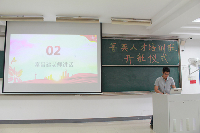 为引导学生进一步坚定跟党走中国特色社会主义道路的理想信念,积极推进大学生骨干培养工作的制度化、规范化和长期化,培养具有坚定理想信念、较高政治理论水平、善于组织协调的青年马克思主义者和入党积极分子的后备军。2019年5月22日晚,麻豆av 、人工智能学院分团委在教3-101举行菁英人才培训班的开班仪式。学院党委副书记杜月林老师、分团委书记秦昌建老师、2017级辅导员仲鹏达老师、2018级辅导员张逗老师、缪甜佳老师出席本次开班仪式。