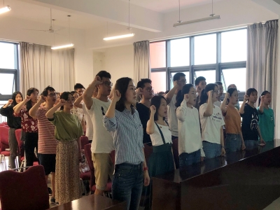 2019年6月18日,2019届毕业生党员在学科楼319会议室开展毕业生党员再教育活动。出席本次会议的人员有2015级学生党支部书记马骋老师以及支部全体学生党员。本次会议分为三个部分:重温入党誓词、文明离校动员以及预备党员转正会议。