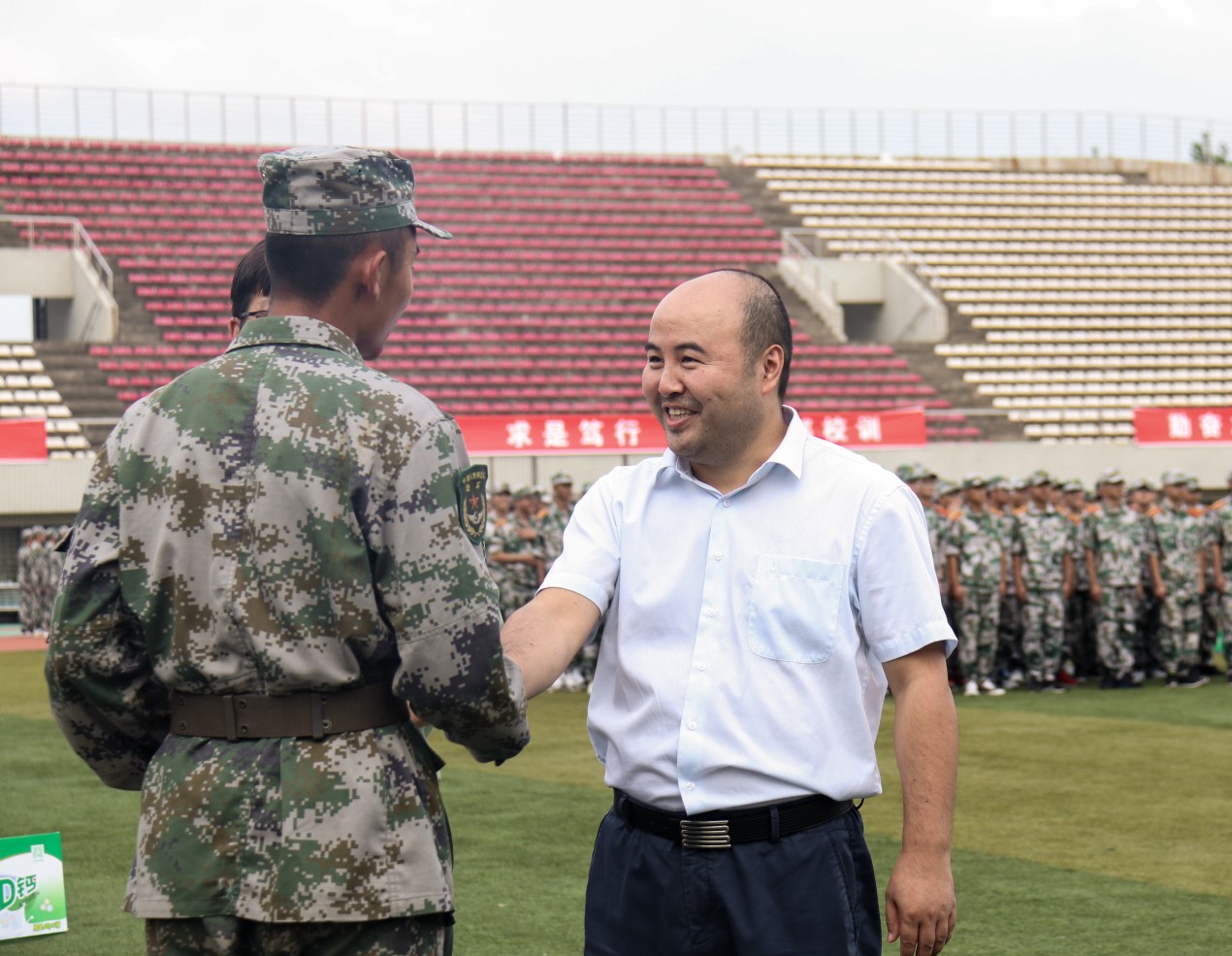 在军训场上新生们以连为单位开展训练,他们队列整齐,精神饱满,积极完成训练任务。看到此情此景,孙书记对新生不惧高温,坚持完成训练的坚韧毅力给予了高度肯定,并且希望新生们能够严于律己,服从命令,培养吃苦精神。