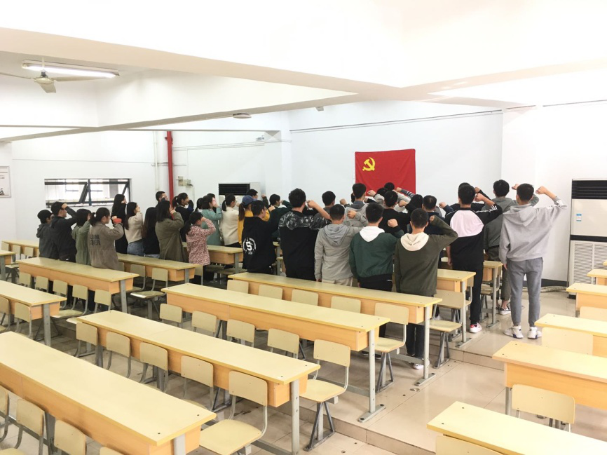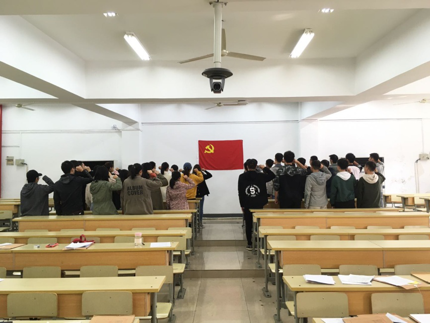 活动中,全体成员首先重读了入党志愿,展开了关于重问入党初心的讨论。大家纷纷发言,回忆了当时向党组织提交入党申请时的情景,发表了对入党为什么、入党后如何不忘初心的认识。大家积极分享成长感悟,感谢党组织对于自己的辛勤培养,汲取为党奋斗、积极进取的伟大精神力量。随后,在闫森同志的带领下,全体成员面对鲜红的国旗,郑重举起右手,重温入党誓词,进一步坚定理想信念、牢记初心使命,在庄严的氛围中再一次接受党组织的检验。
