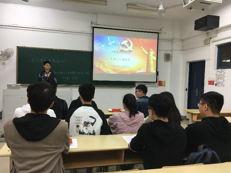 首先,每位党员对自己的入党志愿进行了回顾,宣读了核心内容,每个人都对自己的成长经历有了一个新的感悟。大家回忆了自己的入党经历,从只是怀着对成为党员的光荣而向往的懵懂少年到拥有一定政治思想的新时代研究生党员过程中的趣事,很多事情现在想起来仍然印象深刻。随后,结合共产党员的初心和使命,叩问自己的入党初心,把入党作为一种思想的进化、觉悟的提高、特殊的奉献,在重问初心的过程中进行认真思考,自我检查,发现自身的不足并进行弥补。最后,大家面对党旗,以饱满的精神状态、洪亮的声音庄严宣誓,表明了为党的事业奋斗终身的决心。