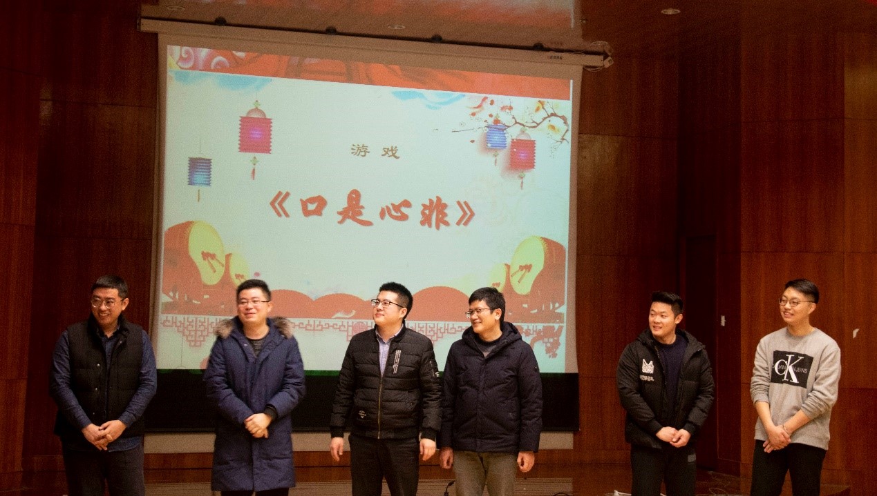 本次联欢会在宋杰老师独唱的歌曲《我爱你中国》正式开始,2019是伟大祖国诞辰70周年,欲以这首歌表达我们心中对于祖国母亲崇高赞美和无比热爱。老师们为这次联欢会做了精心的准备,表演形式丰富多样,节目内容精彩纷呈。岳东院长独唱了《当你老了》、谭彩铭老师演唱了《你的眼神》,歌声优美而抒情,现场顷刻间充溢着温馨和柔情。除了歌曲以外,语言类节目也是技惊四座,由先进院老师给大家带来的脱口秀,讲述了老师们在从事科研事业、工作闲暇、家庭生活、健康养生的奇闻趣事,引起了大家的共鸣,一时间多功能厅掌声不断;此外实验中心的四位老师也呈上了精彩表演——三句半《都挺好》,通过幽默诙谐的方式描绘了2019年麻豆av 、人工智能学院取得的瞩目成绩,这些成绩都离不开每一个奋斗的自动化人。岳东院长除了歌唱以外,一篇《致橡树》的深情朗诵,更是情意深远,涤荡心灵,收获了无数掌声。姚金明老师的舞蹈《两个人》更是现场的气氛推向了高潮,振奋的旋律,曼妙的舞姿,场下掌声连绵而不绝。除了精彩的节目,同样也少不了紧张的游戏环节,老师们积极参与进来,配合默契,也赢得了满堂的喝彩。最后,联欢会在秦培宇老师动感街舞表演中圆满落幕。