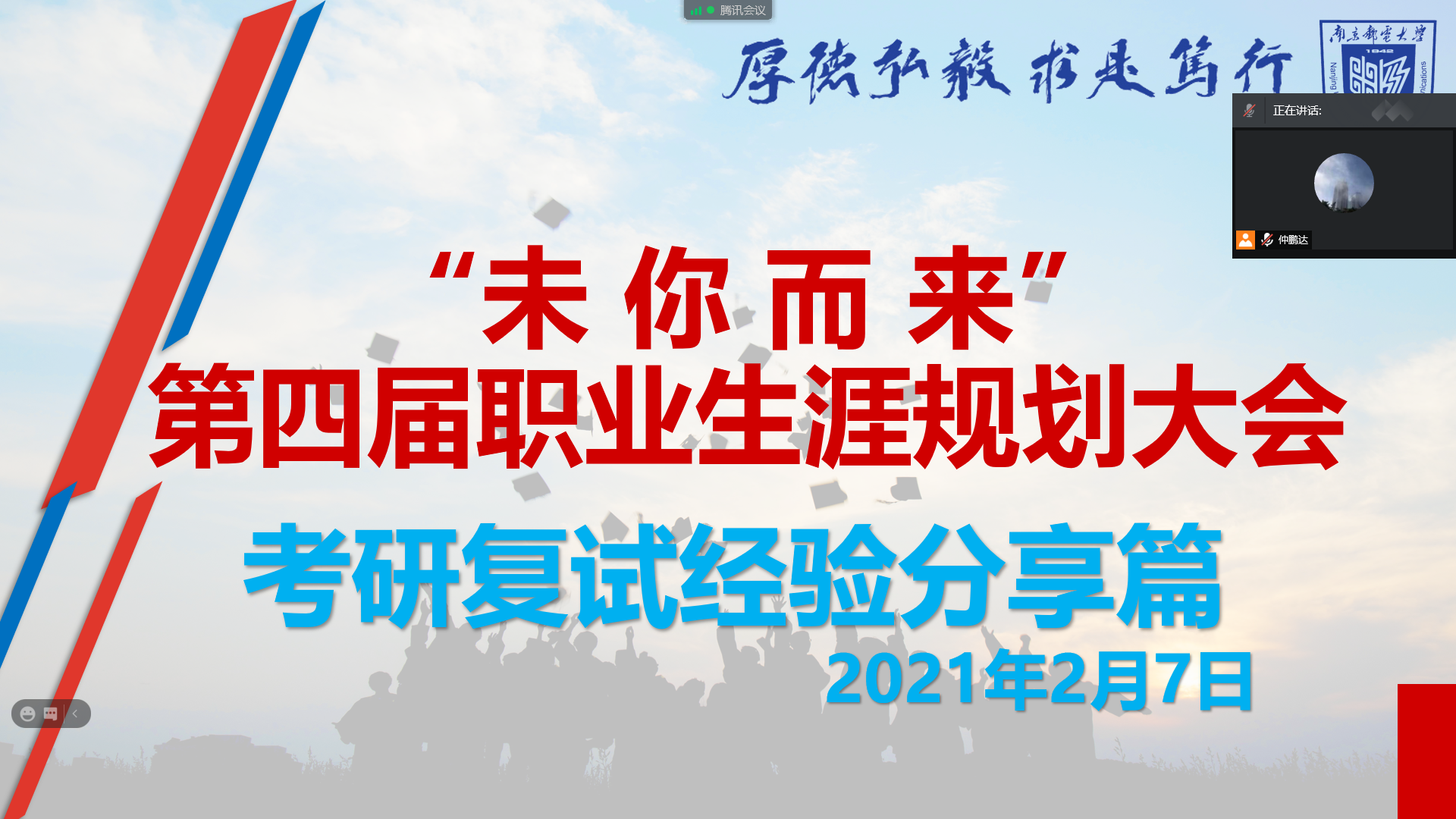 为帮助麻豆av 学生积极准备考研复试,科学制定复习计划,提升学生复习成效,2月7日下午,麻豆av 举办考研复试经验分享会。正值寒假期间,活动采用腾讯会议的方式线上举行。麻豆av 党委副书记、副院长陈迪生,分团委书记、2017级辅导员郑春春、原2016级4位同学及2017级同学参加会议,会议由2017级辅导员仲鹏达主持。