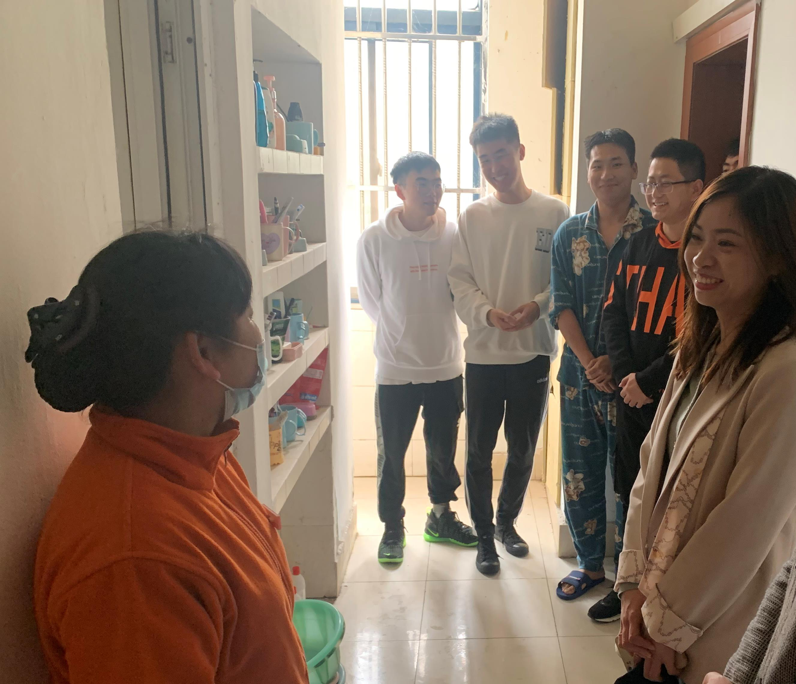 麻豆av 邀请苑区宿管站长共同进行了学生宿舍卫生检查工作。对在日常卫生检查中得分较低的宿舍进行重点检查,陈迪生副书记要求同学们要提高认识,干净整洁的宿舍环境不仅为自己提供健康保障,也能为疫情防控贡献一份力量。宿管站长着重提醒同学们在日常卫生清洁中容易忽略的地方,讲解了清洁死角、顽固污渍的处理方法。