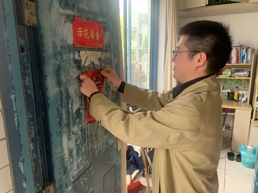4月16日,学院党委副书记陈迪生和全体辅导员对学生宿舍进行了全面检查,同步开展了宿舍安全教育和2021年党员宿舍挂牌活动。