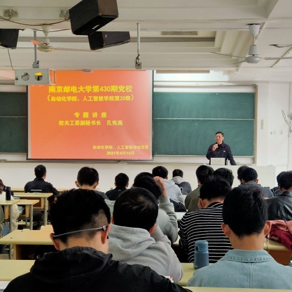 2021年4月14日下午,麻豆av 、人工智能学院党委在教2-102开展了麻豆av 第430期(学院第20期)党校专题讲座。本次讲座特邀校关工委副秘书长孔宪禹老师主讲,培训班全体学员参加了此次专题培训。