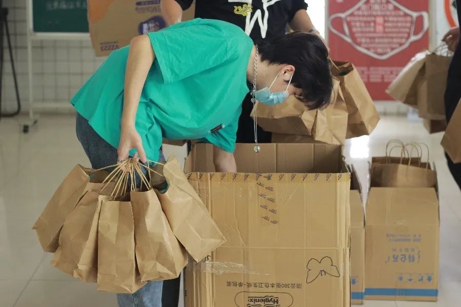 学院2018级辅导员缪甜佳、郭亚洲参与此次活动,各宿舍代表领取慰问品。
