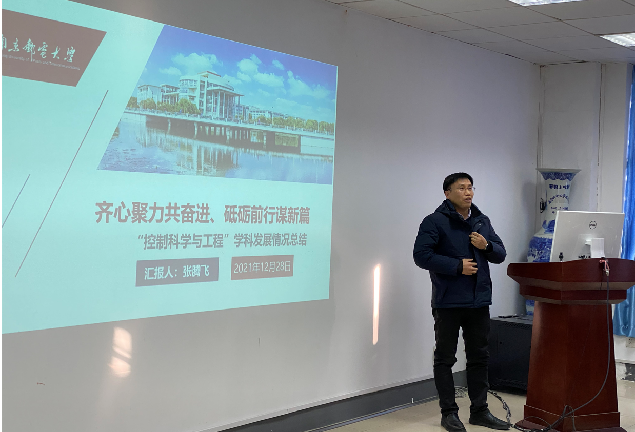 组织部副部长、人事处副处长,学院原副院长张腾飞从学科发展与建设和一级博点申报工作两方面对控制科学与工程学科的发展历程进行回顾。副院长丁磊从学科整体、科学研究、人才培养、师资队伍四方面明确博士点建设目标,并从平台建设、人才培养、成果转化、科技创新、国际合作五个方面出发,梳理建设思路,明确建设举措。