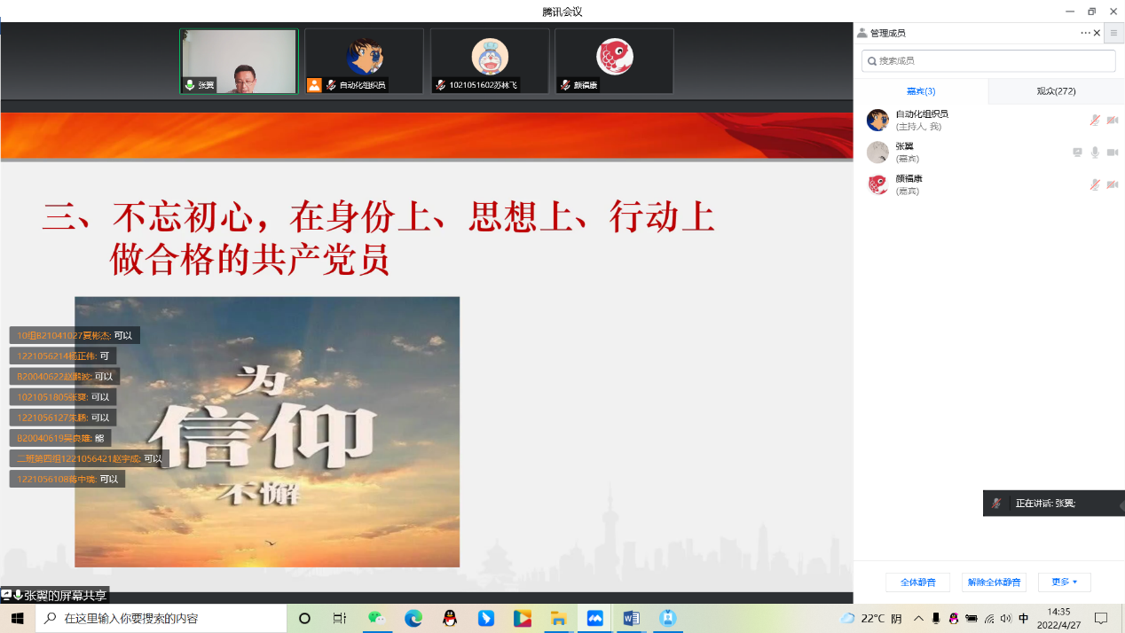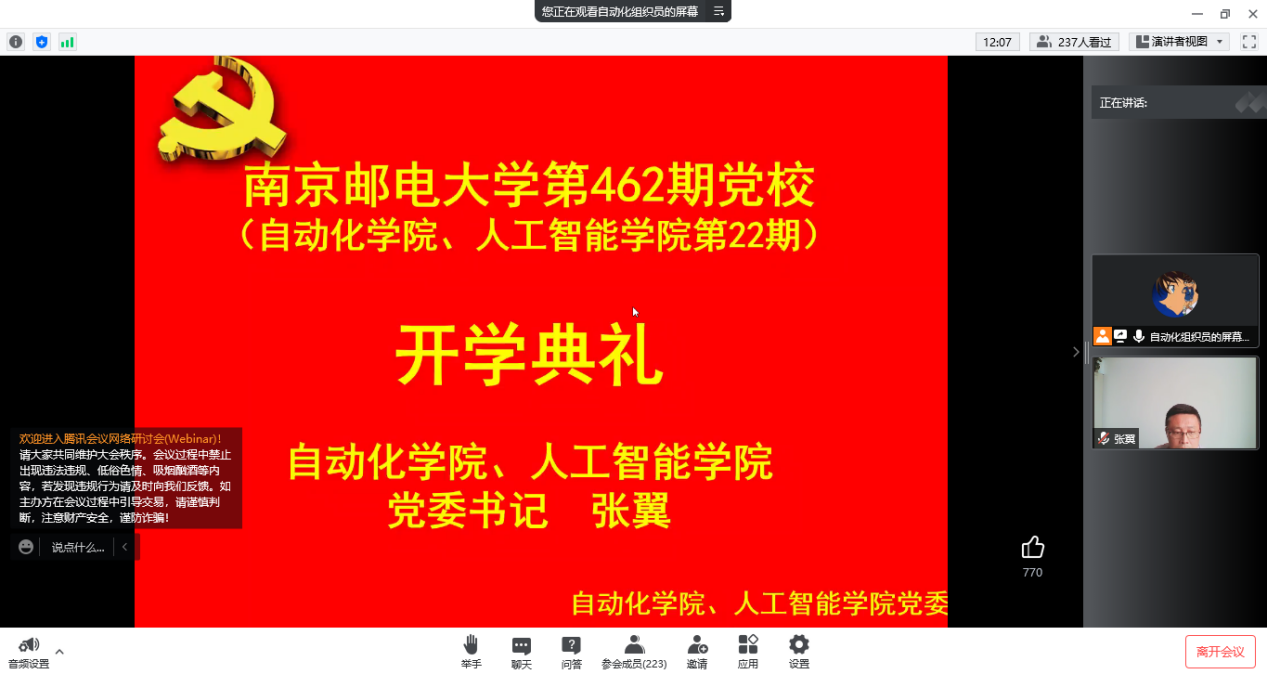2022年4月27日,麻豆av 第462期暨麻豆av 、人工智能学院第22期入党积极分子党校培训班顺利开班。学院党委深入学习贯彻习近平总书记关于疫情防控的重要指示精神,坚决落实中央、省委疫情防控决策部署和校党委具体要求,本期培训班教学活动采用线上形式举行,由麻豆av 、人工智能学院党委书记张翼主持。