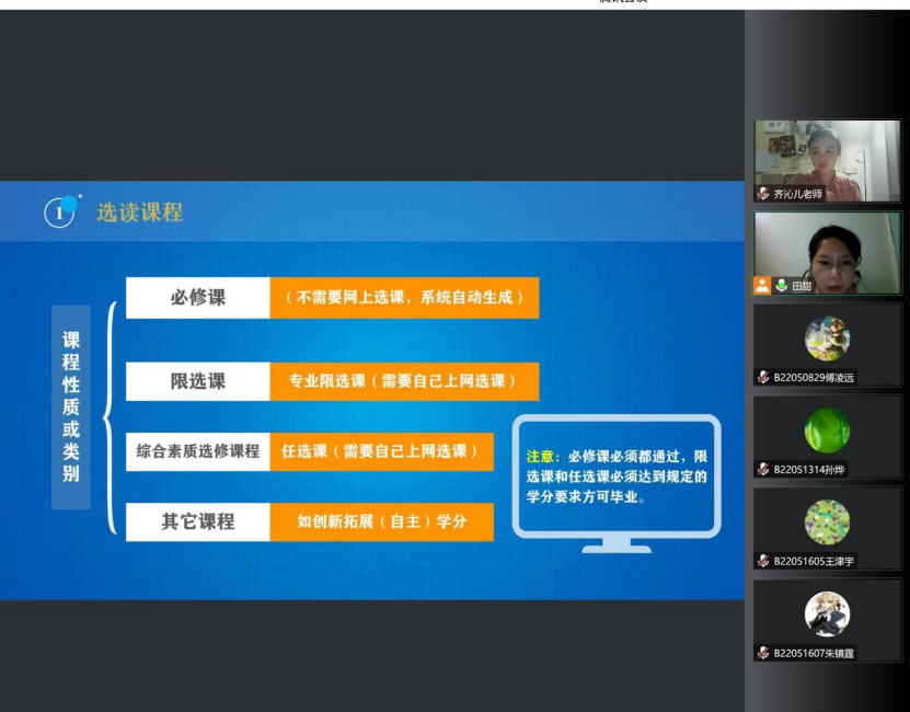 为帮助2022级新生了解学籍相关政策与教学相关的管理规章制度,在教务处学业指导中心的指导下,麻豆av 于10月19日14:00、19:00举行2022级新生学籍政策宣讲活动,两次宣讲会由教务处田甜老师担任主讲,新生辅导员和全院2022级新生线上参加会议。