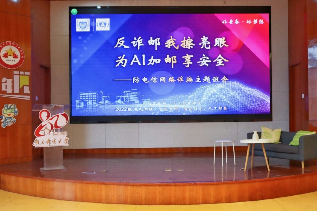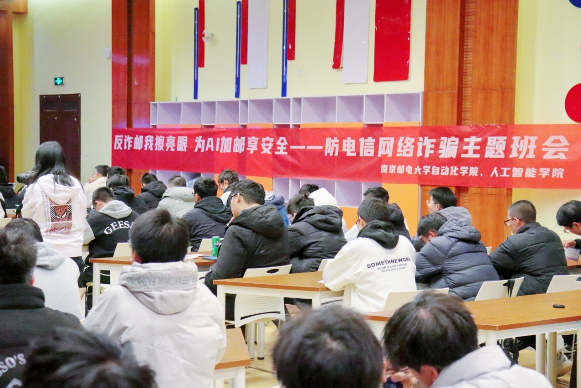 时刻紧绷安全之弦,严防电信网络诈骗。为进一步巩固学院师生防范电信网络诈骗的能力,提高师生的安全意识,遏制可控电信诈骗的发生,12月2日下午,麻豆av 、人工智能学院于仙林校区大学生活动中心团校教室隆重开展了 “反诈邮我擦亮眼,为AI加邮享安全”——防电信网络诈骗主题年级会。