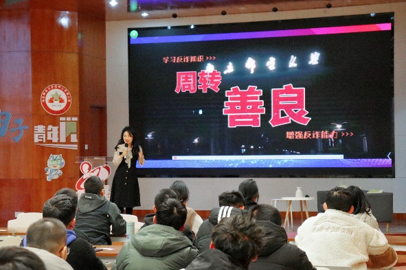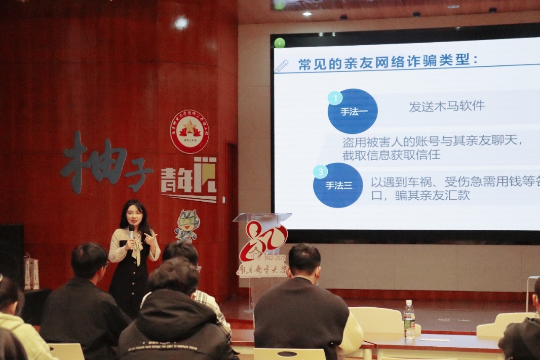 随后,彭建森老师深入研究和分析了集中发生在大学生当中的诈骗案例,并对同学们亲切寄语,提醒大家做好安全工作也应被视作学生学习生活的重点,引导在场同学提高安全防诈意识。