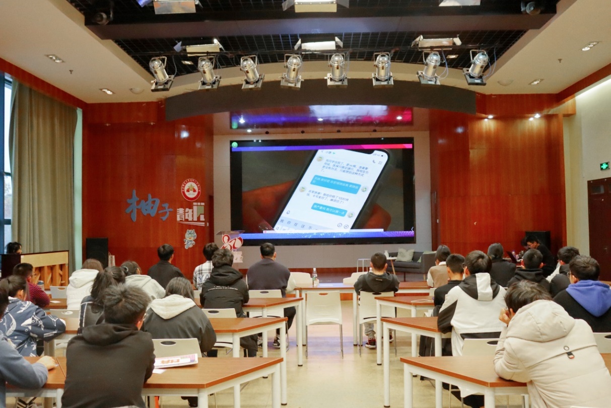 在观影后的圆桌对谈环节,以深度访谈的形式,将“网络游戏诈骗的类型”“为什么骗子要冒充熟人”“施骗过程步骤”及“事后应对措施”等防诈知识点自然渗透。 并就创作缘起、影片创新点、个人收获感悟等方面,师生双方展开了细致的交流探讨。