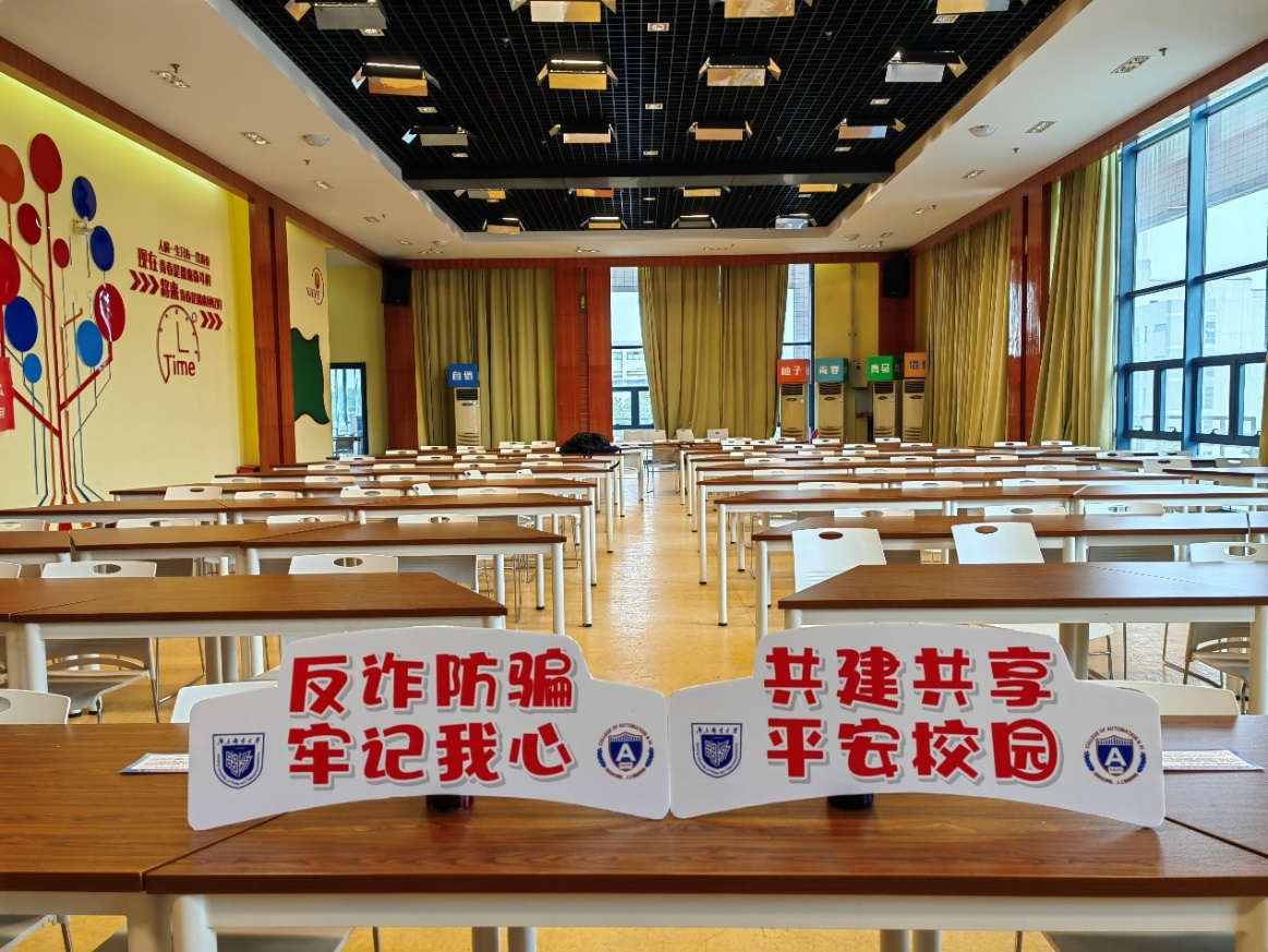 色调明快、氛围温馨的团校教室内,精心装点布置了反诈主题横幅、防诈立牌、会谈沙发圆桌、嘉宾发言台等,并于活动正式开始前循环播放着防诈主题暖场歌曲《像我这样的人(防诈改编版)》。同时,创造性地设立了主讲区、访谈区、游戏区、签名区四大区域,让电信防诈这一指导主题更为立体可感的同时,也为教学的空间场域增添了更为丰富的层次感。