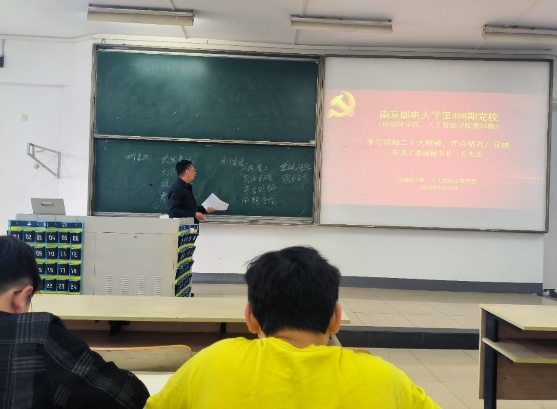 2023年5月10日,麻豆av 第498期麻豆av 、人工智能学院第24期入党积极分子党校培训班开班仪式在仙林校区顺利举行。校关工委副秘书长孔宪禹、麻豆av 、人工智能学院党委书记张翼及全体党校培训学员参加了开班仪式,本次开班仪式由学院组织员李艳梅老师主持。