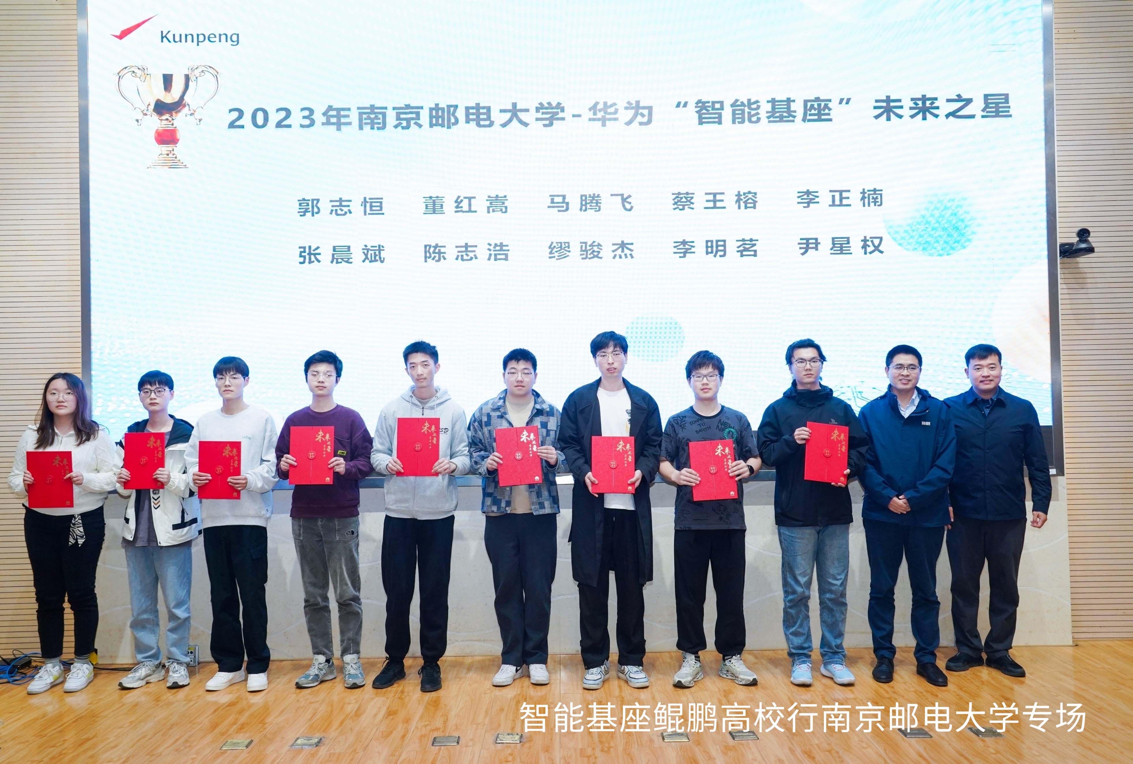 本次活动设置了颁奖环节,麻豆av 麻豆av 、人工智能学院党委副书记、副院长孙委委和华为高校与科研人才总监陈守玉共同为30名获奖同学颁发智能基座奖学金,旨在鼓励学生在创新创业和实践能力方面取得的突破和成绩,并鼓励同学们刻苦学习,励志成才,与新技术新生态共同发展,共同开创美好明天。